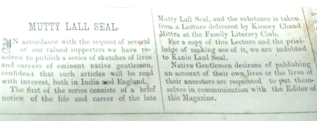 In putting together this website, we acknowledge the huge amount of work done by those who have researched Motilal Seal’s life before this. Having said that, we must point out that there have been no serious academic research projects on Seal’s impact on nineteenth-century and indeed, modern-day Bengal (and India). We have drawn on a large number of sources, citing both contemporary and later research on 19th c. Bengal. These have been categorised as ‘biographies‘, ‘archive‘ (comprising digitised versions of contemporary reports) and of course, our full list of references. In addition, we have included a Glossary of terms for those unfamiliar with the period or the words in the Indian languages that we have used.